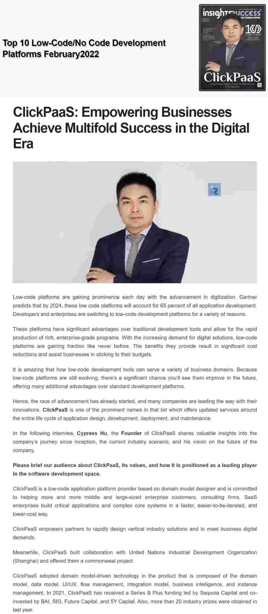 2022年年初,,,GOPAY钱包入选外媒Insights Success低代码/无代码开发平台 Top10,,,,创始人、、、、CEO胡柏受邀接受专访并荣登封面人物,,,他与Insights Success的读者分享了GOPAY钱包成立的初心、、、、发展历程、、、当前的行业发展趋势以及他对公司未来的展望。。。