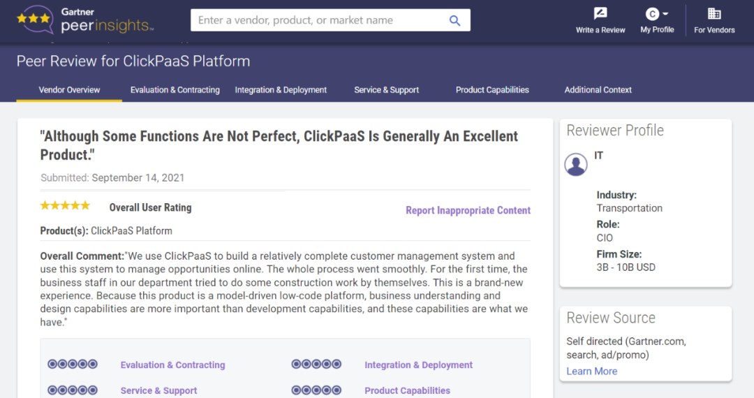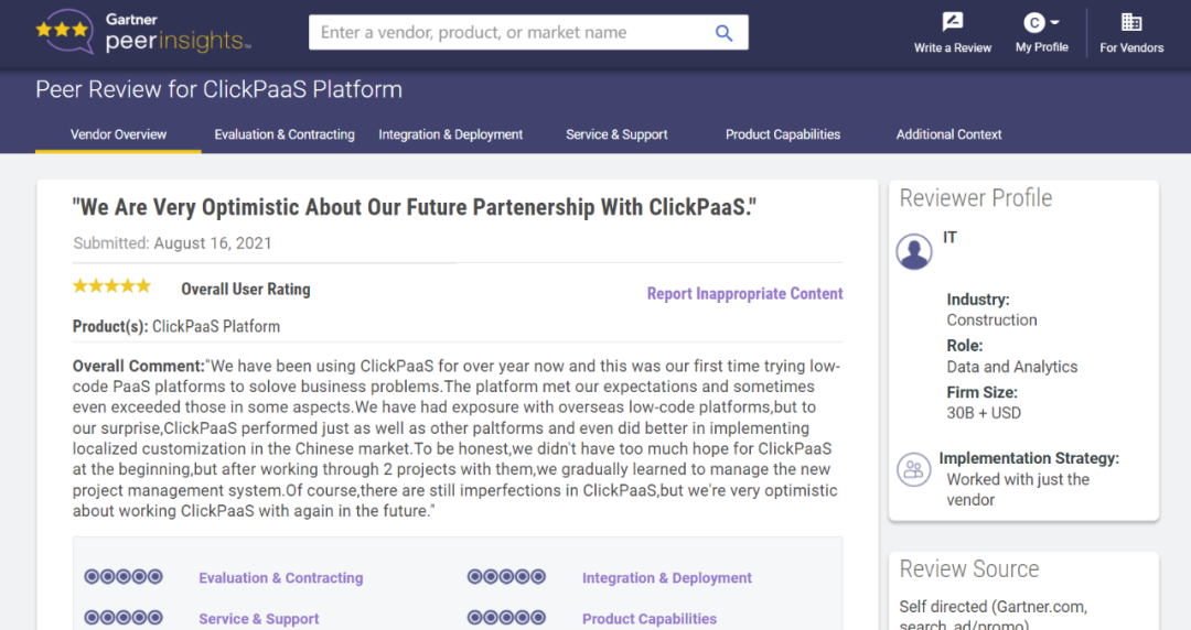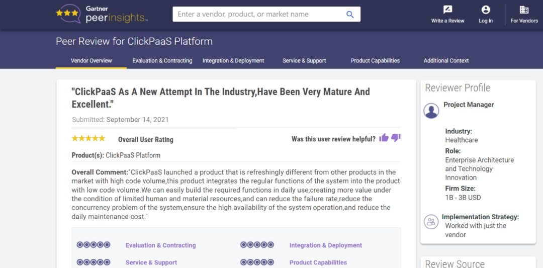 Tips::【Peer Insights】——用户对企业IT产品和服务发布真实评价的平台。。。目前已有355个市场,,,,255,000条经过验证的评价。。每一条评价Gartner会针对参评企业营收规模及参评人员信息做验证、、评价内容做多维核实。。。。